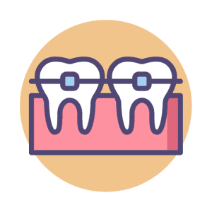The brackets of braces are small, square metal pieces that are glued to the centre of each tooth.